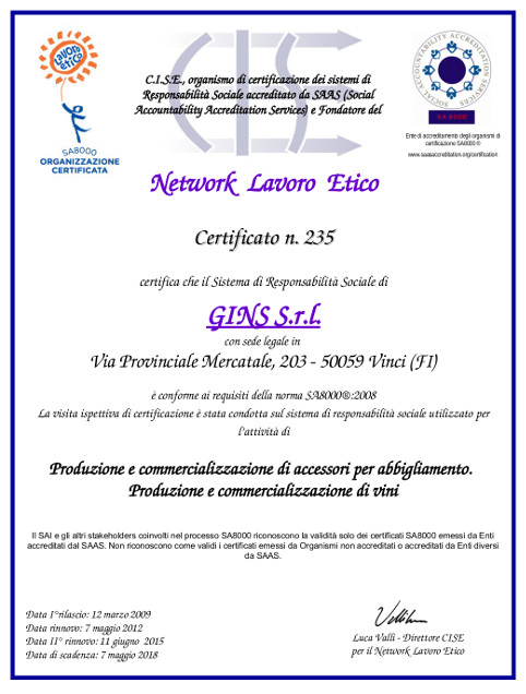 La GINS S.r.l., consapevole del proprio ruolo e delle proprie responsabilità nell'ambito della comunità economica e sociale, vuole caratterizzarsi come operatore eccellente per quanto riguarda la propria RESPONSABILITA' SOCIALE.
